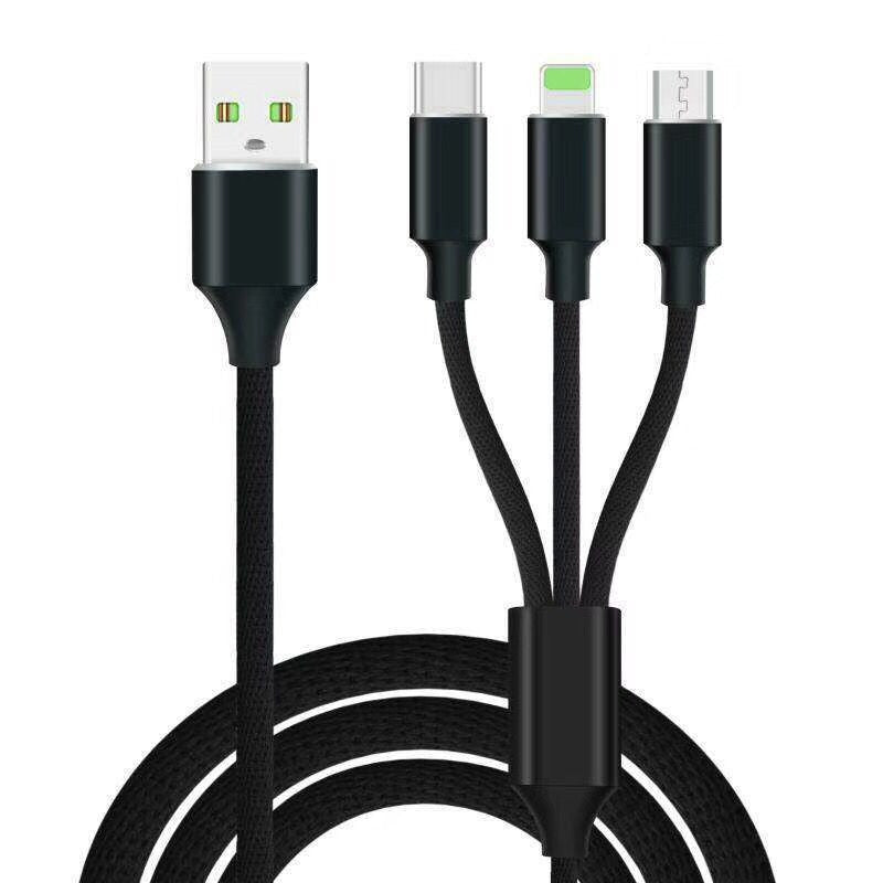 2.4A High Speed Nylon Fast Charging 3 in 1 Type-C 8 Pin Micro USB Cable